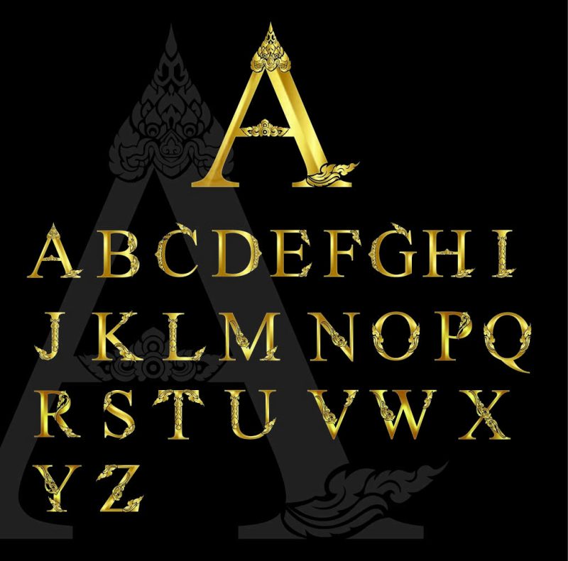 font ประดิษฐ์ Eng รวม ลายไทย เวกเตอร์